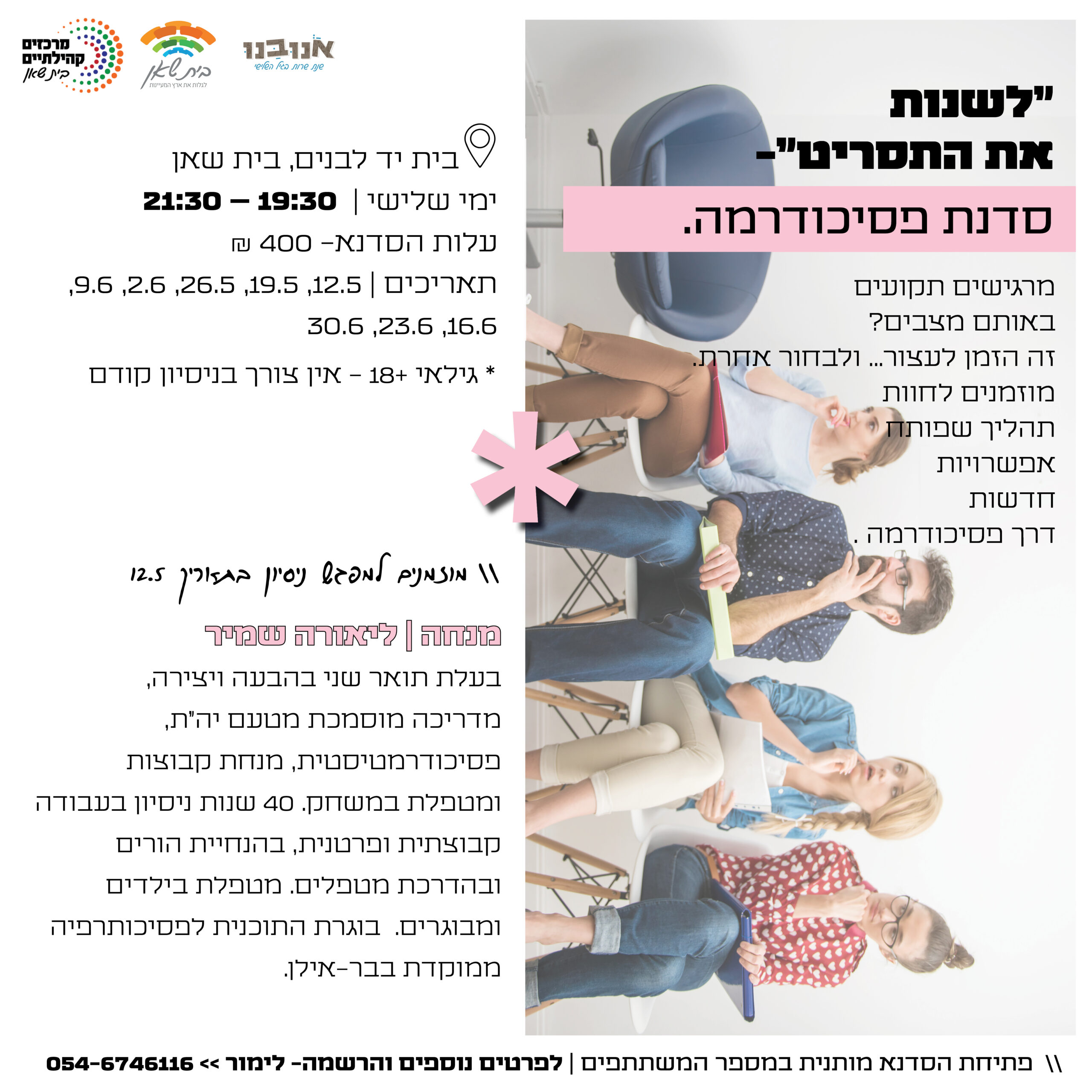 ימי שני 19:30-21:00מיקום בניין יד לבנים בית שאן.
