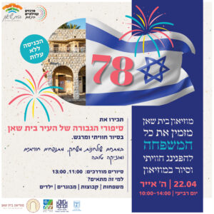 מוזיאון בית שאן בא לספר את סיפורה של העיר, האנשים, המבנים והנוף, שחלקם קיימים, אך חלקם כבר אינם. הסיור במוזיאון מלווה בסיפורי נוסטלגיה מפתיעים, משחק משפחתי אינטראקטיבי, תערוכות ומיצגים שיחזירו אתכם לימיה הראשונים של העיר.